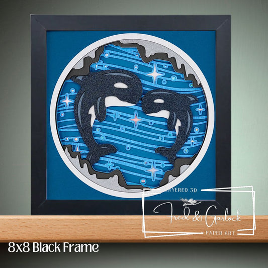 8x8 - Fairy in Moon Holding Star Blues/Silvers - Black frame